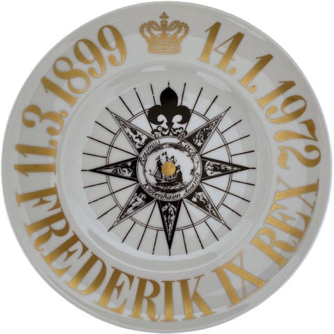 Super flotte kongeblå platte - med flotte hvide udskæringer og guld - fra Bing & Grøndahls serie af platter med Nordiske Konger.