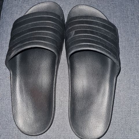 Sort, Badetøfler, slippers, klipklappere eller hvad man nu kalder dem. Indstillelig ind over foden. Unisex. 30 cm lang. Let og med riller nedenunder, så man ikke så let glider i dem. Som nye. Kan bruges af alle.