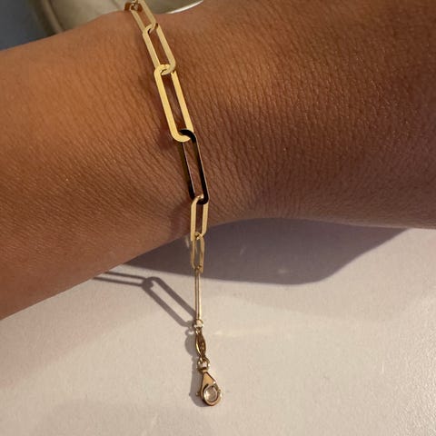 18 karat guld armbånd med 18, 14, 10, og 8 karat og et forgyldt vedhæng.