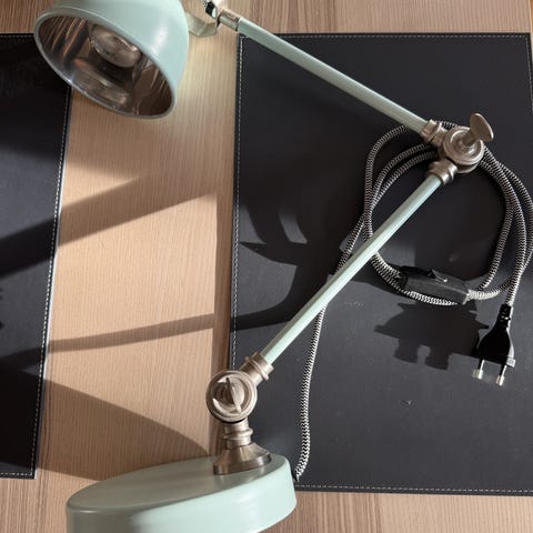 Skrivebordslampe, Flot gammel bordlampe udført i sort porcelæn og messing. Lampen er 40 cm høj incl. fatning. Vil være flot med en gløde pære. Sender gerne.