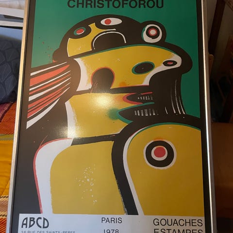 Litografi, John christoforou, motiv: Paris 1978, Indrammet plakat fra ABCD 36 rue des Saint-peres 400kr