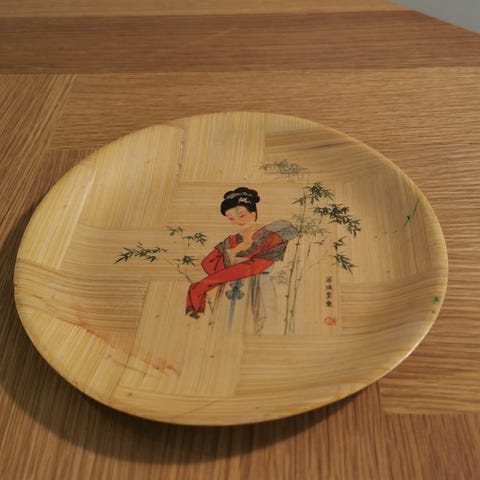 Kinesisk Platte / Tallerken, Med guld, Bare så utroligt fin, det håndbroderede blomstrede Uld Møbelstof er til salg på anden annonce.