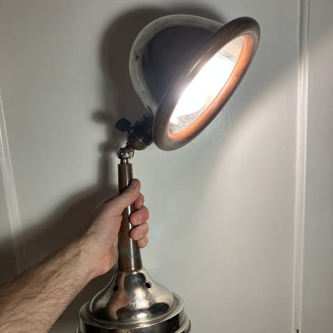 Anden bordlampe, Bouillotte Lampe, Fin to armet Fransk Bouillotte Lampe med messingfod, den originale silkeskærm og justerbart skærmstativ, hæve/sænke.