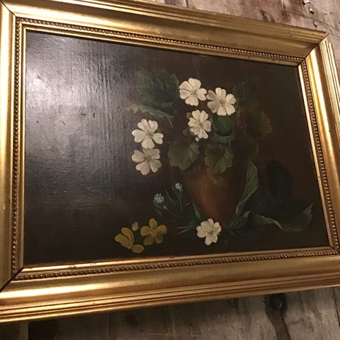 Oliemaleri, Christian Jensen, motiv: Blomster/Have, b: 50 h: 66, Blomstermaleri.