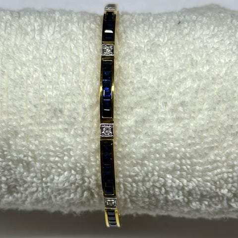 18 karat guld armbånd med 18, 14, 10, og 8 karat og et forgyldt vedhæng.