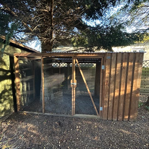 Voliere, b: 250 d: 250 h: 200, Voliere i 20x20 aluprofil med 25x25x 1,75 tråd. Med låge.