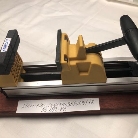 Skruestik, Grå med vingeskruetvinge. Kæbebredde 4 cm. Vægt 2,31 kg.