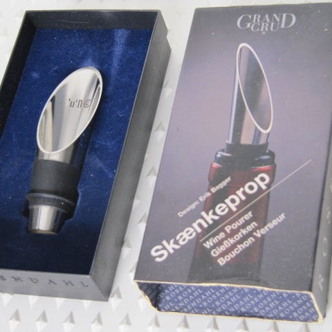 Rustfrit stål, Skænkeprop, Rosendahl, Grand Cru, Med påtrykt logo BG Bank.