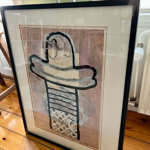Gouache, Lone Høyer, motiv: Abstrakt, stil: Abstrakt, b: 65 h: 83, Lone Høyers billede er i tusch og gauge