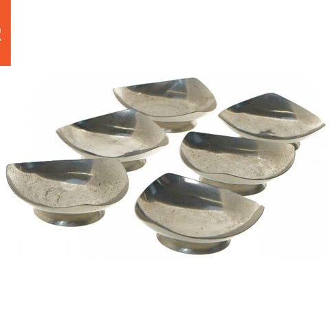 2 fine skåle /askebægre i rustfri stål med blomster motiv i midten. Ene med lidt brugsspor.