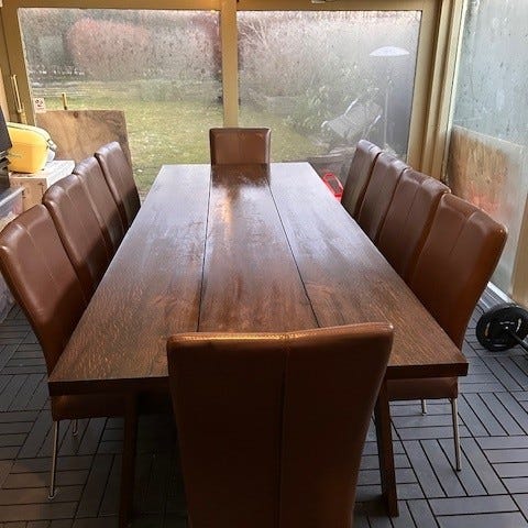 Der er ingen fejl på hverken stole eller bord, og der følger olie med til bordet.