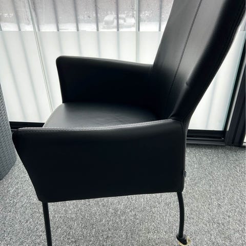 Spisebord m/stole, Træ og læder, Just, 6 stk just spisebordsstole mørk grå, fremstår meget pæne, uden hjul.