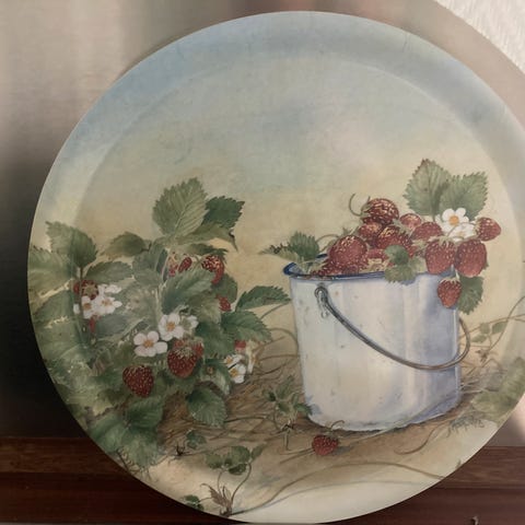 Severingsbakke i træ, håndmalet dansk vintage, Retro bakke med håndmalede blomster, lige til at tage med ud i haven eller hænge op i køkkenet.