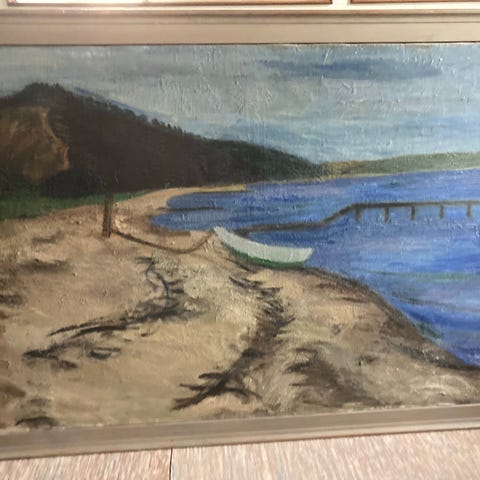Akrylmaleri, Sigrid Klein, Fiskekoner på Gl. Strand