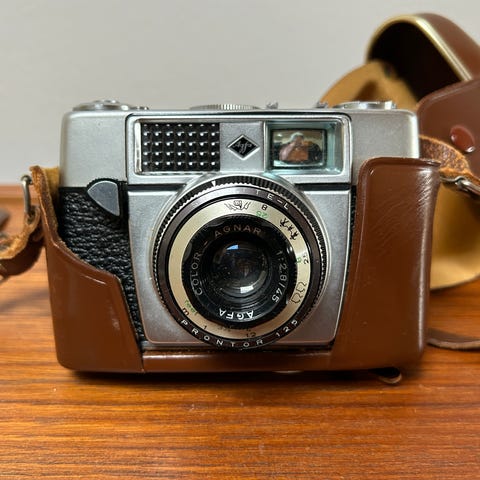 Kamera/kameraudstyr, Agfa Silette Vario, Fra 1961. Fejler intet. Medfølger: Lædertaske, 2 filmruller samt Braun blitz (med taske). Sælges samlet.
