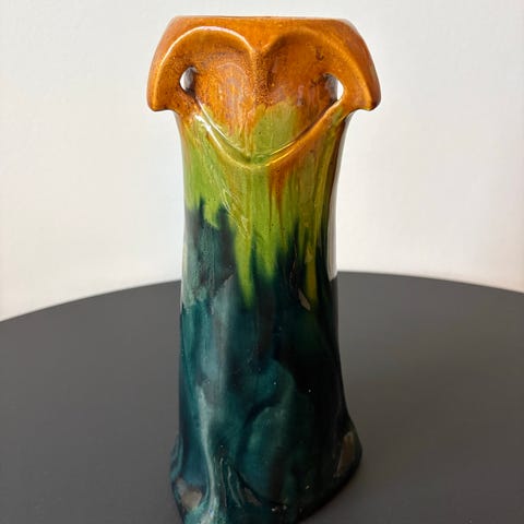 Art Nouveau Vase Med Tin Montering, Michael Andersen, Smuk gammel art nouveau vase med monteret tin bånd.