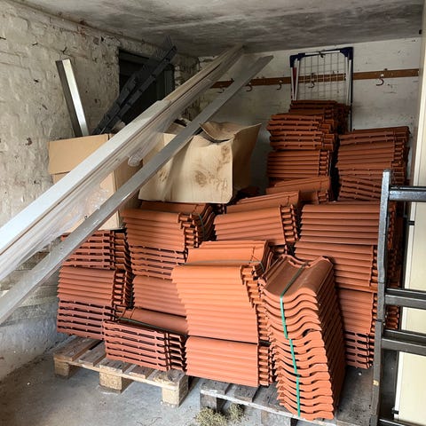 Tagsten, Lystagsten, lysplade, lyssten. 4stk i glas til gammelt tegltag.