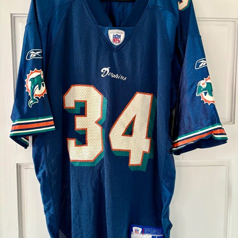 Amerikansk fodboldudstyr, Miami Dolphins NFL football shirt, Reebok, str. Large, NFL Miami Dolphins Reebok amerikansk fodboldtrøje i Large med 23 Brown.