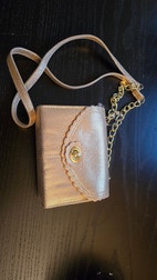 Lille festtaske i guld farve.