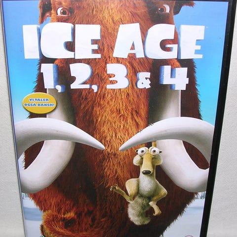 Ice Age 1,2,3 & 4, DVD, tegnefilm, Alle de 4 første Ice Age film med Dansk tale