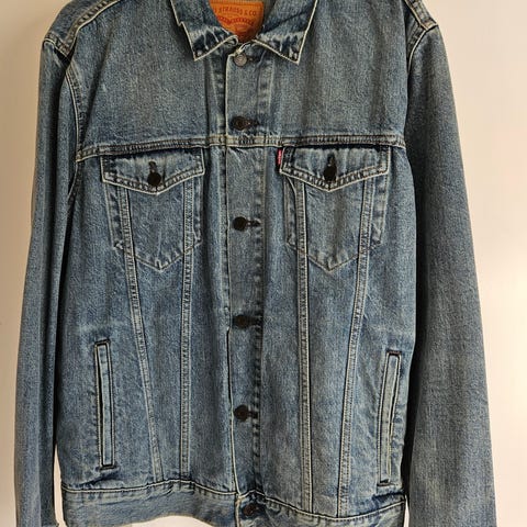 Cowboyjakke, str. L, Levi's, Blå, Bomuld, God men brugt, Superlækker Levi's denim jakke i tyk kvalitets bomuld. Jakken har et stort vintage rygmærke (dateringen kendes ikke). Me aldersrelateret brugsspor uden huller.