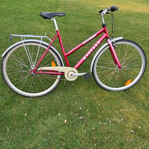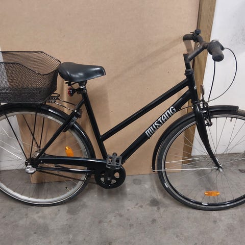 Damecykel, Mustang, 56 cm stel, 3 gear, Klassisk, robust, stålcykel, 3 gear, med fodbremse bagpå og håndbremse på forhjul. Komplet skilt ad og ny-samlet, smurt i alle samlinger (foto 2). Schwalbe Marathon Plus dæk på baghjulet, som nyt. Nyt tandhjul på baghjul og kæde. Lås med 2 nøgler. Købes uden garanti som beset, gerne prøvekørt. Alt kan justéres, så cyklen indstilles naturligvis til køber. Bæredygtigt genbrug :-)