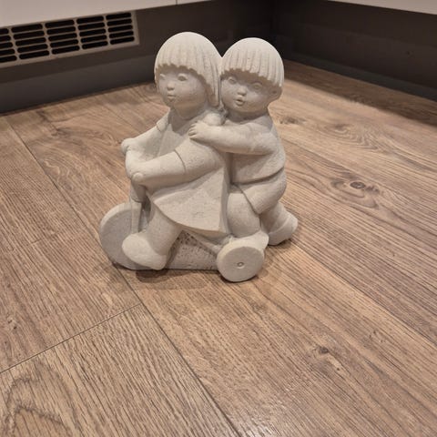 Sandstens figurer, dreng - pige der holder om hinanden. 15 cm høj. Velholdt uden skår og revner.