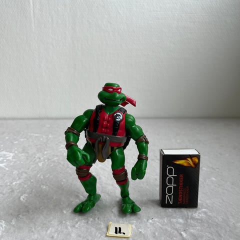 Ninja turtle, Mirage studios playmate, Stor figur. Den er dobbelt så høj som de fleste figurer. Tror den er ca. 30 cm høj. Har ikke tilbehøret der originalt fulgte med. Der står 2002 i bunden. Se billeder for stand.