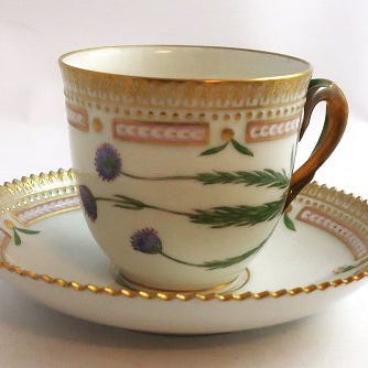 Porcelæn, Kaffekop med underkop samt sidetallerken, Originaldekor flora Nordic
