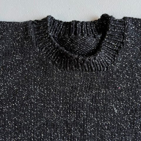 Håndstrikket turkisfarvet top i 100% bomuld i str XL, men kan også bruges af mindre størrelser. Det kommer an på hvor løst man vil have den skal sidde.