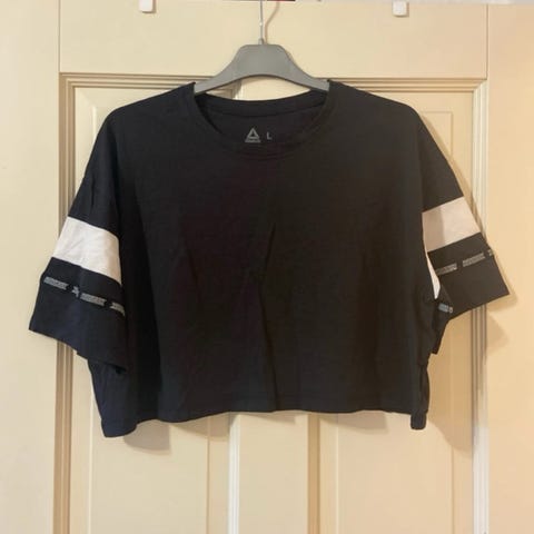 T-shirt Fitness Rebok str. M 38-40. Teksten er blød velour lignende stof. Meget fin stand, nærmest som en ny. Ann. nr. P512