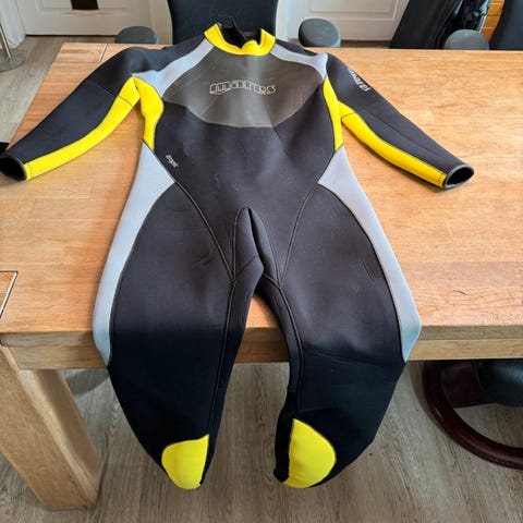 Våddragter, 2 stk. Mares Origyn 5 (5 mm). Fra ikke ryger hjem. Er ikke sikker på størrelserne, da størrelsesflip i nakken er klippet af. Er kun brugt få gange. Billederne kan godt snyde lidt da de er målt til samme størrelse. Sælges samlet og tages tilbage samme dag hvis de ikke passer.