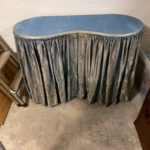 Antikt mahogni toiletbord med facetslebet vippespejl H 54,5 cm, B 38 cm