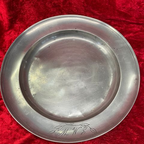 Barok tin fad, 1700 tallet; 20cm. x 15cm. x 2cm. Fejlfri.