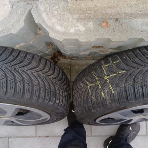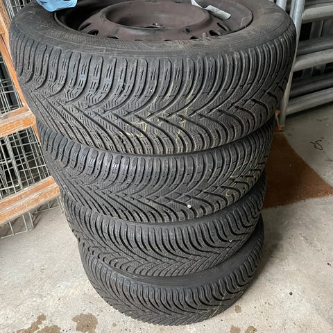 Varmforzinkede stålfælge med “nye” Kleber vinterdæk. Passer bl.a. til Toyota Sportsvan.