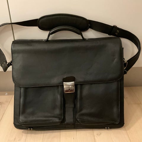 Elegant og rummelig Cavalet-kontormappe, flere separate rum, sort med rød kantlinje. Med kodelås, men kan også låses med nøgle. Kan sendes. Pris er ex fragt.
