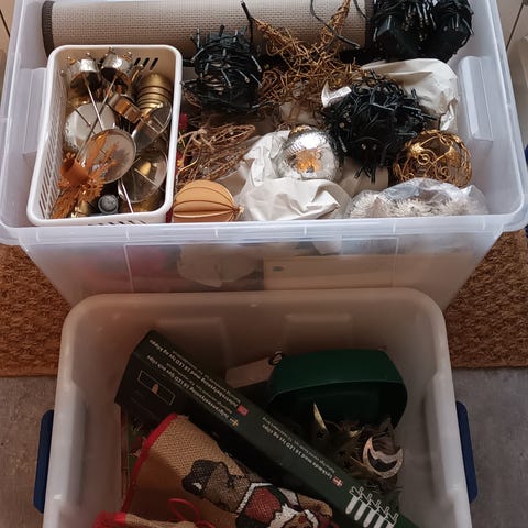 3 juleopbevaringskasser. Kasserne er brugte og har brugsmærker og -spor. Se billeder. Farven er falmet nogle steder.