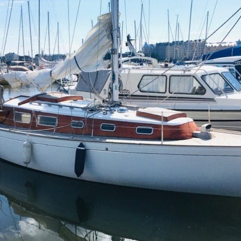 et overkommeligt projekt - der skal laves cockpit - og front af ruf/ kabine - lidt ny lak indvendigt - motor Volvo penta 2030 har KUN kørt i 2 sæsoner den er udstyret med teakliste på fribord - ankerspil stævnplatform - køleskab osv osv. kan Blive en fin båd igen i de rigtige hænder - min vurdering er at det rent omkostningsmæssigt er arbejdstid der skal lægge i den sejl ser ok ud mast og bom er alu -