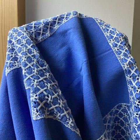 Vintage dug 80x80 cm off-white med brunt korsstings broderi