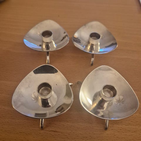 3 stager fra Cohr / Atla. Kan bruges til både alm. sterinlys og kertelys. Sølvplet.