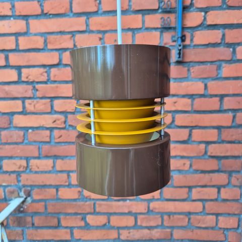 Højde 25,5cm. Ny fatning og bæreplade og hvid ledning, der måler 350cm. Har lidt brugsspor. Befinder sig i Brabrand. Prisen er fast.