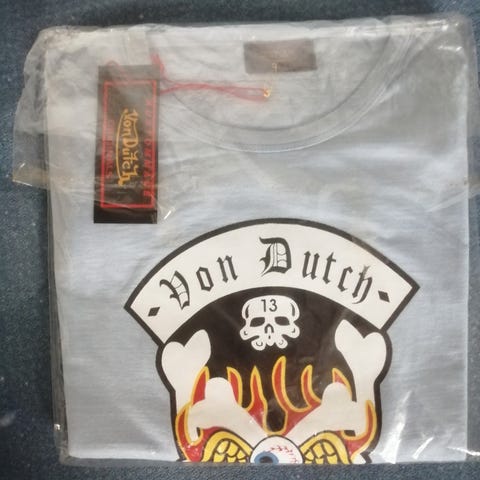 Von Dutch sweatshirt str. M. Camouflage lignende mønster i grålige farver.