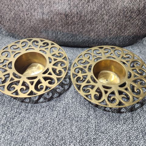 2 Stk / et par fyrfadslyssestager i messing med stjerne huller, ret flotte når der er lys i dem og det er mørkt.