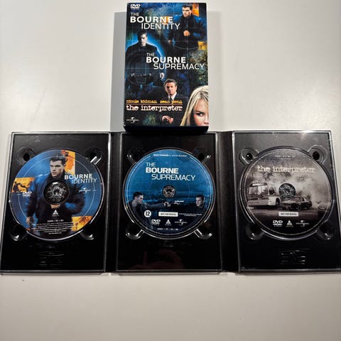 Dvd Box. Triple Disc Collectors Boxset. The Bourne Identity, The Bourne Supremacy, og The Bourne Files bonus disc. Kan godt sendes