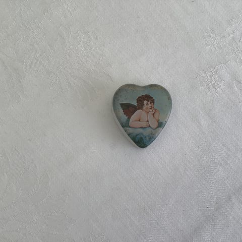Helt unik skøn lille beholder med låg - Pilleæske i kunstnerisk håndmalet porcelæn og signeret i bunden