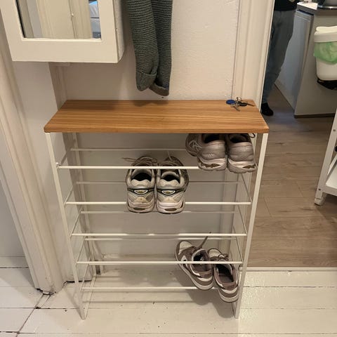 Skoreol, 2 stk. næste nyt Skostativ Mål (cm): 60x 24x 31(h). Pris er pr. stk.