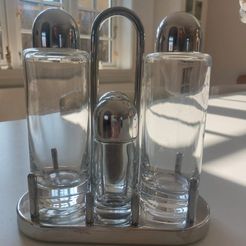 Turi design Daisy salt og peber sæt. Den ene har et lille afslag på hjørnet under bunden. Se billede.