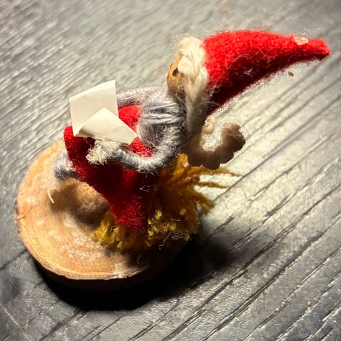 Torslow nissemor magnet, Fin retro køleskabsmagnet med fin nissekone. 5,2 cm høj.