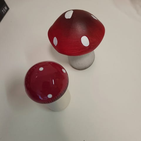 10 stk. røde paddehatte md hvide prikker. Højde ca. 5 cm + pind.