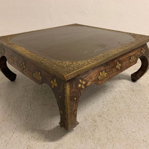 Sofabord, Indonesisk træ, Top stand kvadratisk sodabord til stor stue. 130x130cm x H: 40cm. Buede fødder. Marroco inspireret stil. Farve. Rustik mat sand.